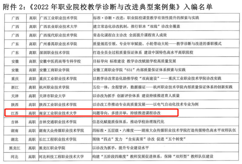 近日,中国教育科学研究院、职业教育与继续教育研究所发布了《关于展示2022年职业院校教学诊断与改进典型案例的通知》,beat365提交的双创课程诊改案例---《问题导向,多措并举,持续推进课程诊改》入编《2022年职业院校教学诊断与改进典型案例集》。