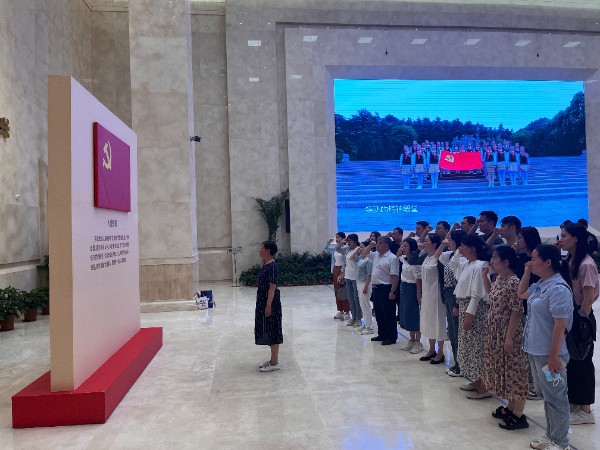 在纪念馆一楼展厅,全体党员面向党旗,庄严地举起右手,握拳宣誓,重温入党誓词。铿锵有力、庄严神圣的誓词,更加坚定了党员老师为党和人民的事业奋斗终身的理想和信念。