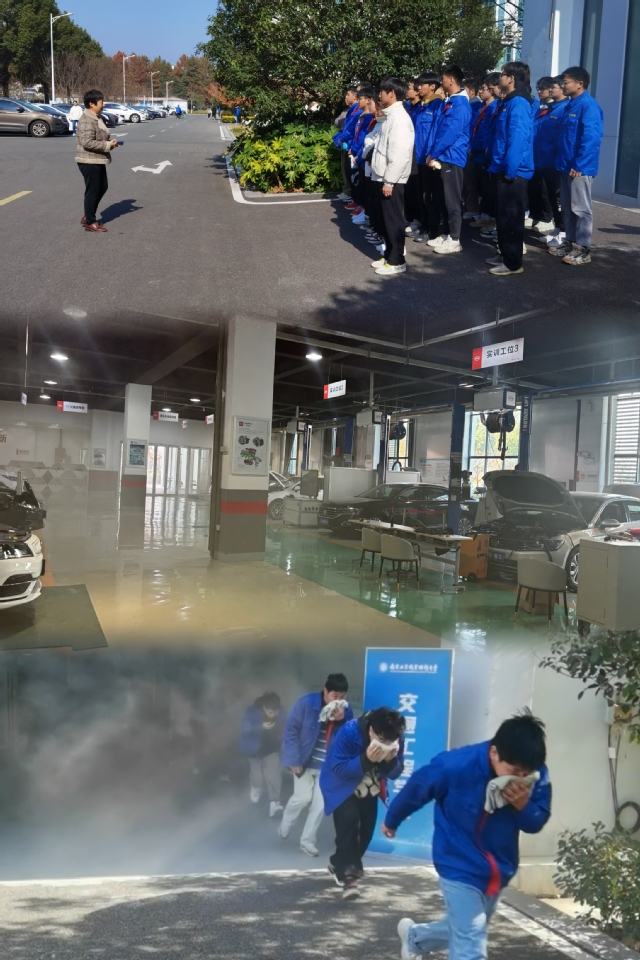 为落实好本次演练,交通学院成立了由学院领导、实验实训中心主任、演练班级班主任组成的工作小组,制定了详细的演练方案。本次活动重点模拟实验实训室突发火灾时,师生如何沉着应对,有序逃离。演练前,交通工程学院副院长邓嘉对参训学生讲解疏散演练时安全注意事项。
