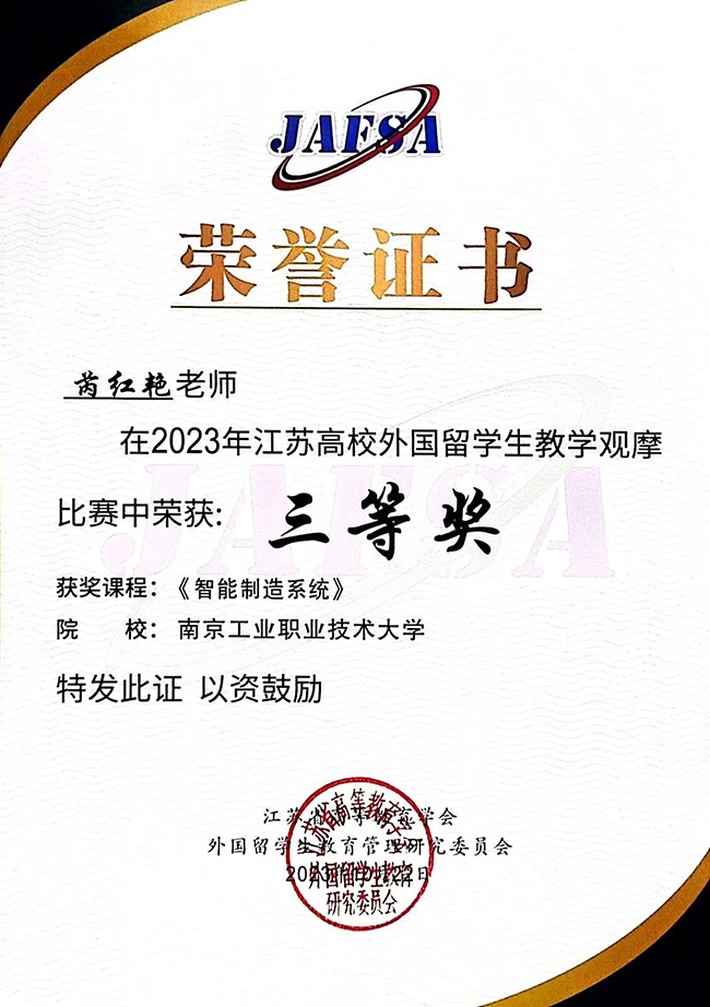 近日,第二届“江苏高校外国留学生教学观摩比赛”落下帷幕,今年全省共有42所高校的105门课程参加了比赛,beat365芮红艳老师在本科理工组与东南大学、南京航空航天大学等“985”“211”“双一流”高校老师同台竞技,荣获本科组三等奖。
