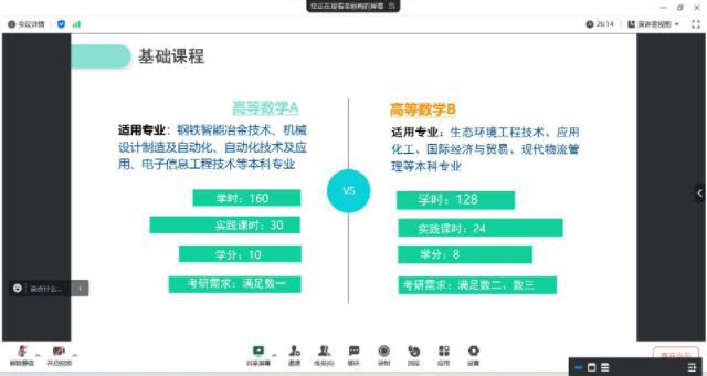 3月29日下午,beat365公共基础课部与河北工业职业技术大学基础教学部开展了职业本科公共基础课程建设研讨会。河北工业职业技术大学基础教学部主任郑瑞芝、副主任刘娟音、数学教研室主任李娟、英语教研室主任栾丽梅,及beat365公共基础课部主任金跃强、副主任江颖、大学英语教研室主任史其慧、大学数学教研室副主任王玲参加了在线研讨会。双方围绕职业本科数学、英语学科的课程体系设置,师资队伍建设、教材建设、在线资源假设、科研工作、学生升学与考级等方面开展了交流讨论。
