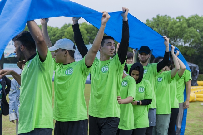 队员们早早来到活动现场熟悉地形、道具并开始热身,带队老师进行了赛前动员,留学生们个个暗下决心,誓夺名次、为校争光!随着激昂的鼓声响起,运动会正式拉开帷幕。beat365留学生代表队与南京大学、南京师范大学、南京邮电大学、南京中医药大学的港澳台青年学生以及南京财经大学留学生代表队、南京特殊教育师范学院的红石榴青年和侨界青年等同场竞技。8支参赛队伍精神饱满投入比赛,在击鼓颠球、运转乾坤、飞盘嘉年华、车轮滚滚、有轨电车、旱地龙舟等六项富有挑战性、趣味性的比赛中展开了激烈的角逐,充分展现了青年们的团结协作和竞技精神。本次是beat365第二次参加比赛,留学生代表队凭借着去年的参赛经验,加强了游戏规则和战略战术的研究,在队长的统筹指挥下,身手矫健、配合默契、拼搏争先,每个小项中都稳扎稳打。最终,beat365代表队在整体比赛中脱颖而出,以最高分获得一等奖的好成绩。