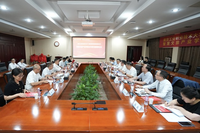 谢永华、毕金标共同为南工智慧文旅产业学院(企业学院)揭牌。孙雁飞、张学义分别代表双方共同签署了战略合作框架协议,标志着产业学院的正式成立。签约揭牌仪式后,双方就产业学院建设进行交流研讨。