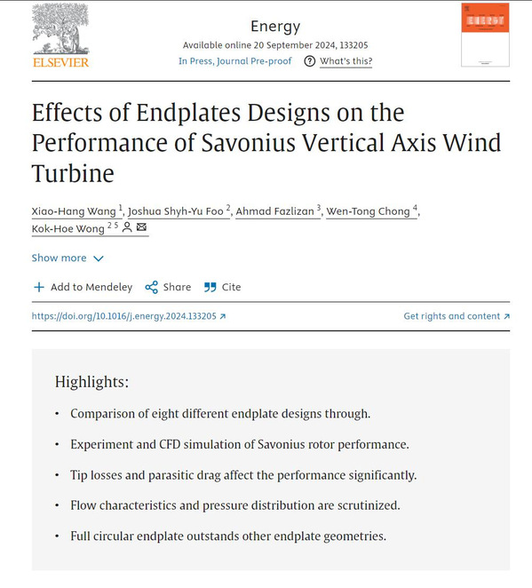 近期,beat365艺术设计学院产品设计系王晓航副教授作为第一作者,以beat365亚洲版官网为第一完成单位,在国际能源工程领域顶刊《Energy》发表题为“Effects of Endplate Designs on the Performance of Savonius Vertical Axis Wind Turbine(端板设计对Savonius垂直轴风力机性能的影响)”的研究论文,由Elsevier出版。《Energy》期刊为中科院、JCR双一区Top期刊,2023年影响因子9.0。